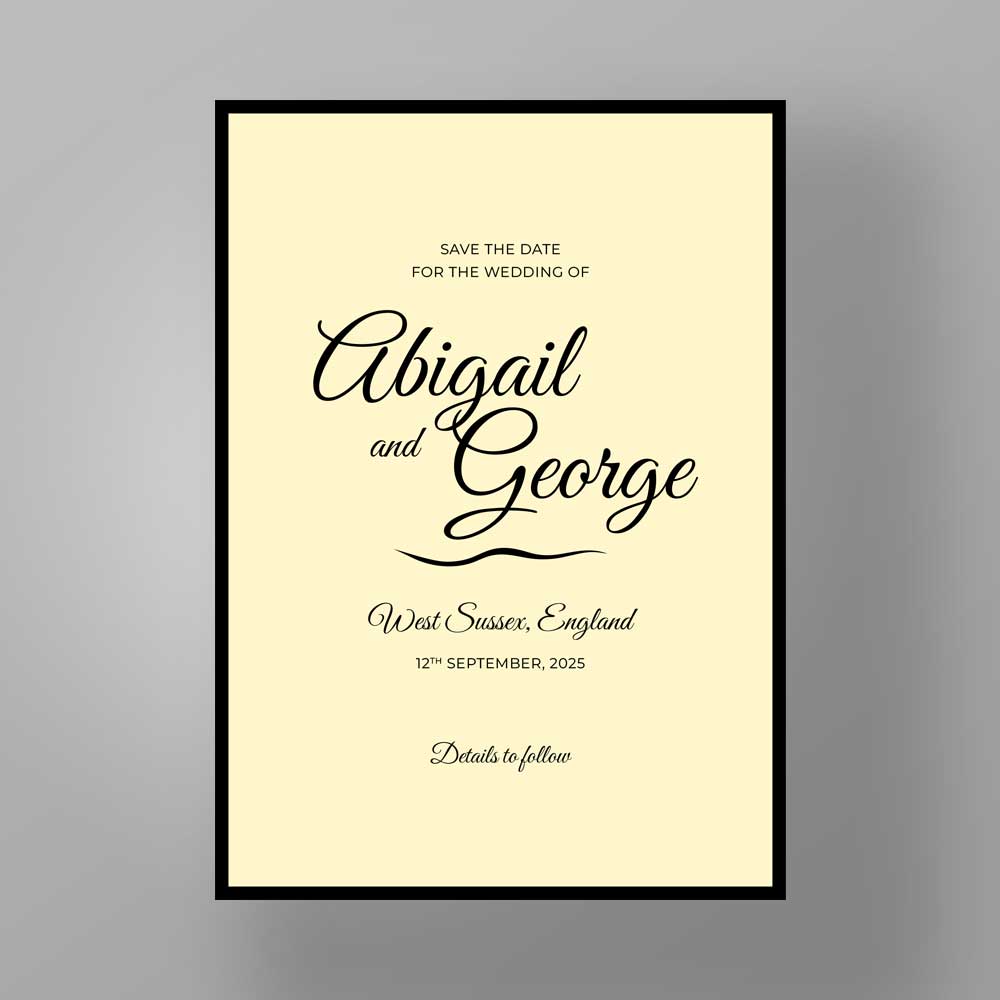 Effortlessly timeless, exudes sophistication with its simple backdrop, bold black border, and harmonious blend of refined serif and graceful script fonts. Inspired by traditional formal aesthetics, it combines structured layouts with understated luxury — perfect for couples seeking a design that speaks of heritage, elegance, and enduring romance.