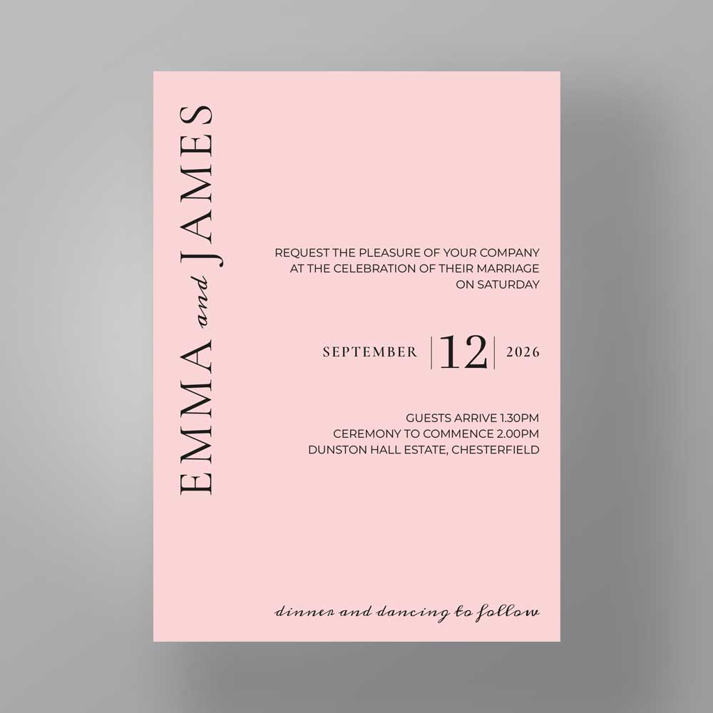 Sleek and stylish, this design draws from Kensington’s refined character. Vertical names and airy composition make it perfect for couples seeking simplicity with sophistication.