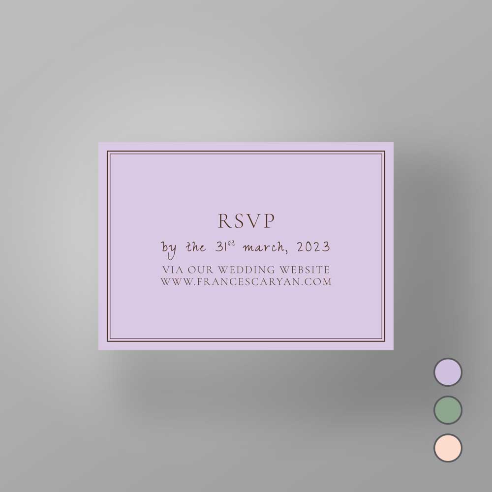 The Soho Soirée suite combines bold simplicity with artistic charm — featuring a clean black border, hand-sketched image, and a choice of softly hued backgrounds in peach, sage, or lilac. Perfect for couples seeking a contemporary invitation with a playful, editorial edge.
