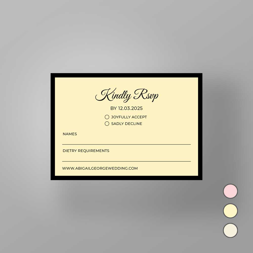 Effortlessly timeless, exudes sophistication with its simple backdrop, bold black border, and harmonious blend of refined serif and graceful script fonts. Inspired by traditional formal aesthetics, it combines structured layouts with understated luxury — perfect for couples seeking a design that speaks of heritage, elegance, and enduring romance.