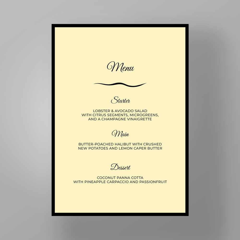 Effortlessly timeless, exudes sophistication with its simple backdrop, bold black border, and harmonious blend of refined serif and graceful script fonts. Inspired by traditional formal aesthetics, it combines structured layouts with understated luxury — perfect for couples seeking a design that speaks of heritage, elegance, and enduring romance.