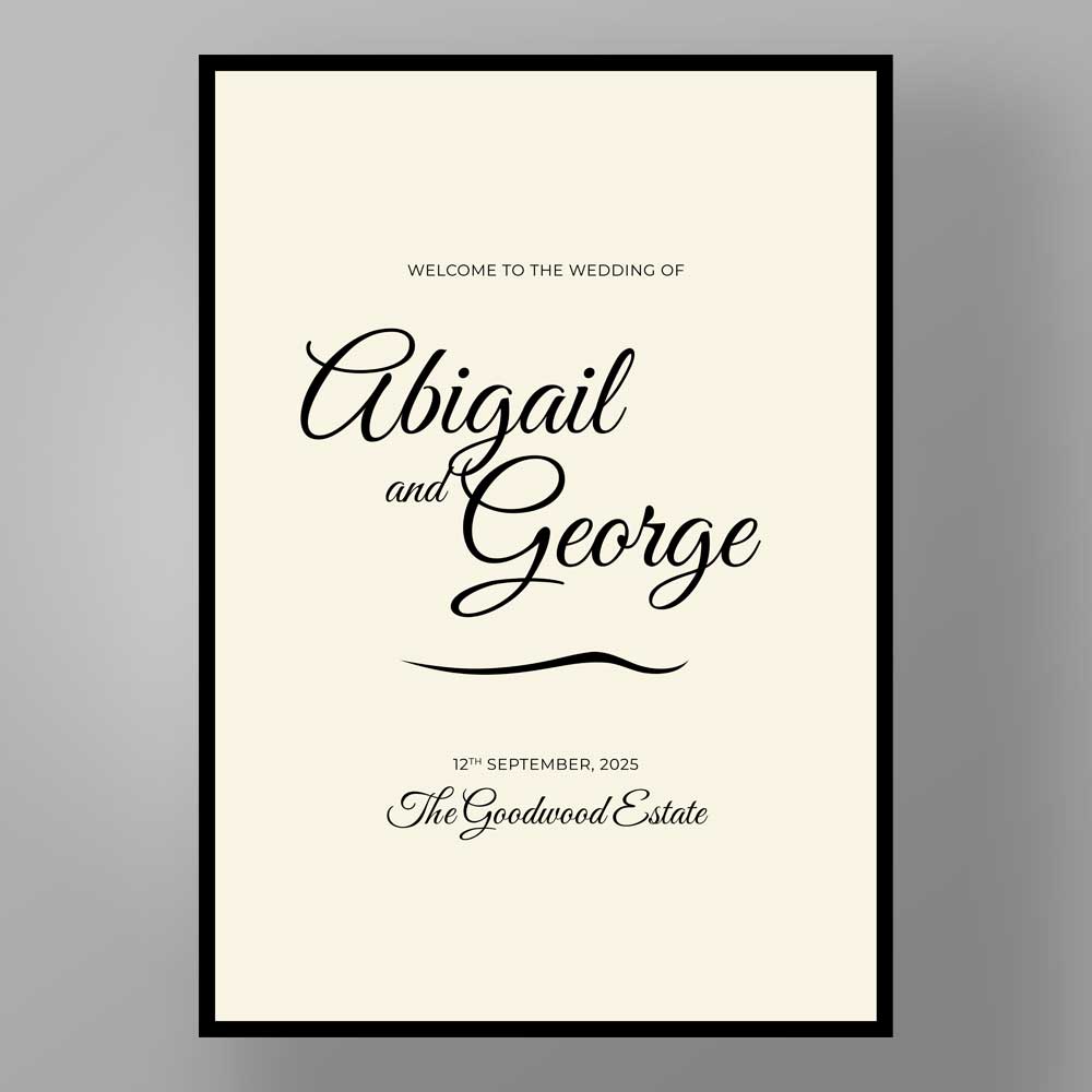 Effortlessly timeless, exudes sophistication with its simple backdrop, bold black border, and harmonious blend of refined serif and graceful script fonts. Inspired by traditional formal aesthetics, it combines structured layouts with understated luxury.