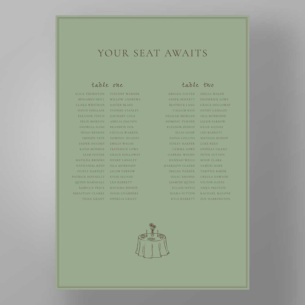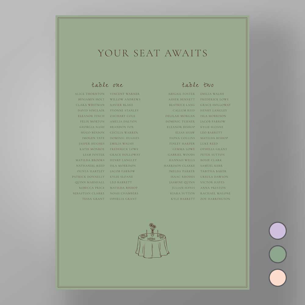 The Soho Soirée suite combines bold simplicity with artistic charm — featuring a clean black border, hand-sketched image, and a choice of softly hued backgrounds in peach, sage, or lilac.